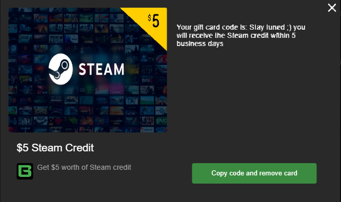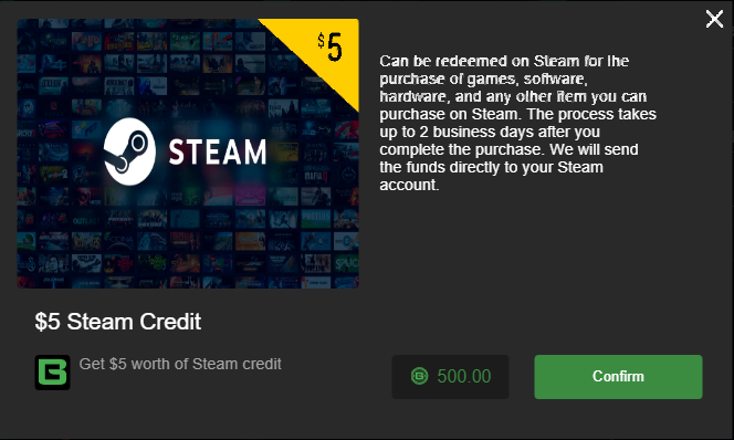 実際に今回は5ドルのSteamクレジットと交換していきたいと思います。
